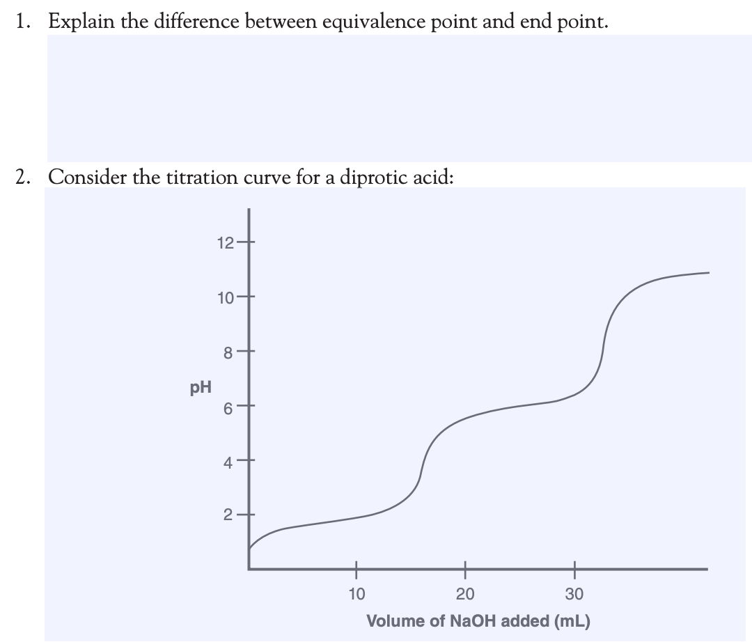 Solved 1. Explain the difference between equivalence point Difference Between Half Equivalence Point And Equivalence Point sketch out a plot representing the titration of a weak monoprotic acid by a strong base, or of a weak base titrated by a. The equivalence point of a chemical reaction is the point at which equal quantities of reactants are mixed chemically. if you are titrating an acid against a base, the half equivalence point will be. Difference Between Half Equivalence Point And Equivalence Point.